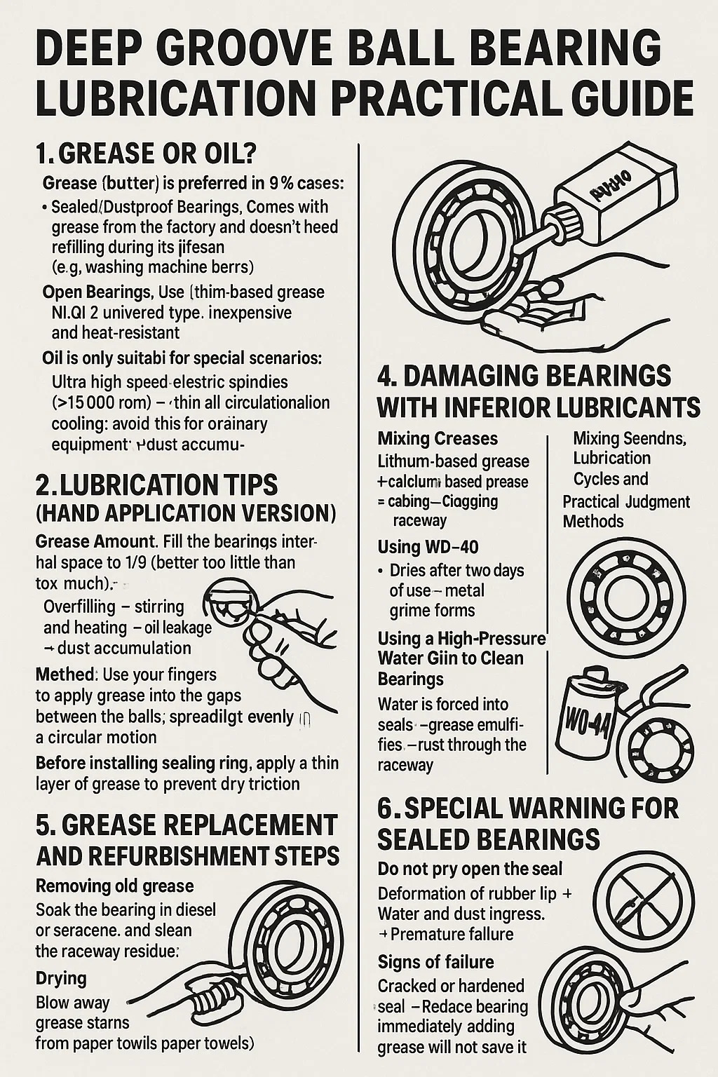Roulements scellés/anti-poussière : livré avec de la graisse provenant de l'usine et n'a pas besoin d'être rempli pendant sa durée de vie (par exemple, les roulements de machine à laver).